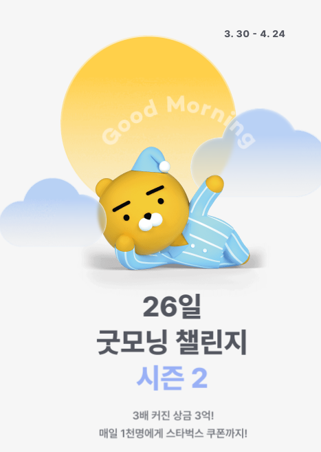 카카오뱅크 이벤트 / 26일 굿모닝 챌린지 시즌 2 / 삼억, 스타벅스 쿠폰