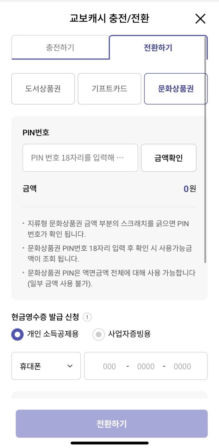 교보문고에서 문화상품권 교보캐시로 바꿔 사용하는 법