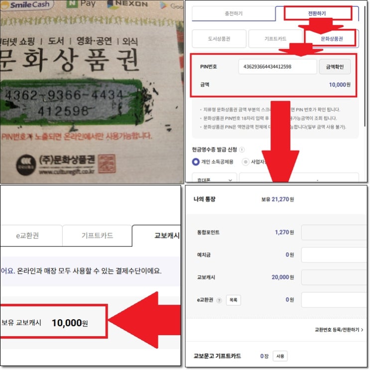 교보문고 문화상품권 교보캐시 포인트 전환 사용 방법