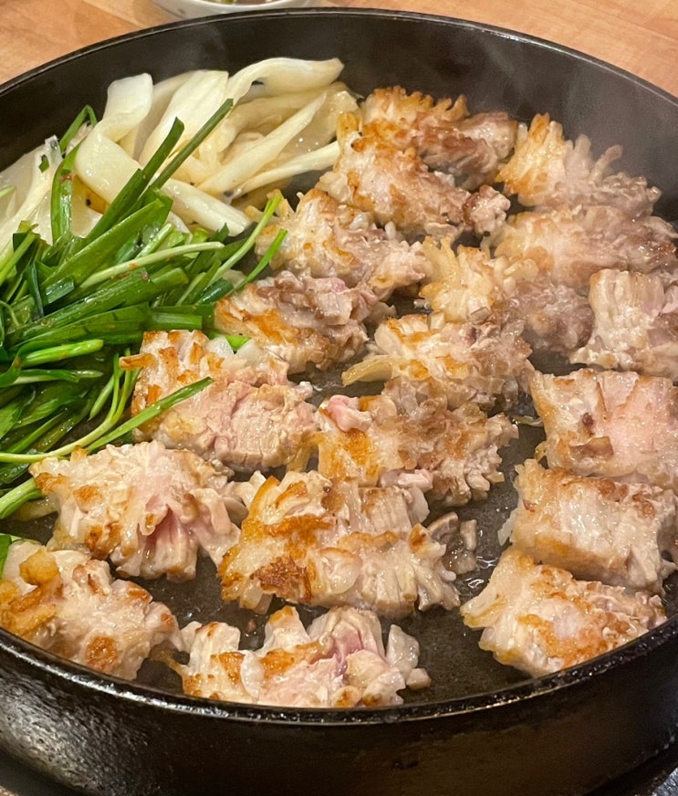 가족 외식으로 재방문하게 된 눈꽃을 나누다 양산 범어점 촘촘하게 칼집이 나있는 이색 삼겹살로, 바삭하고...