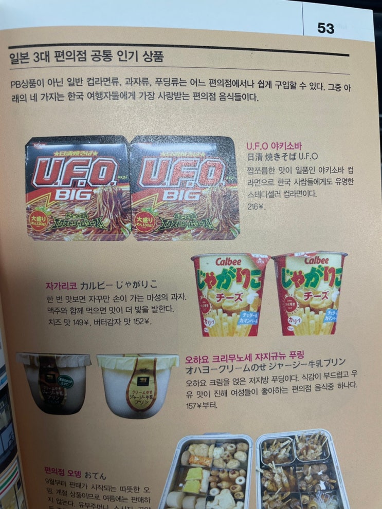 일본 여행 책 내용에서 발췌 편의점 인기 상품 UFO 야끼소바 타마고산도(계란샌드위치) 세븐일레븐 PB...