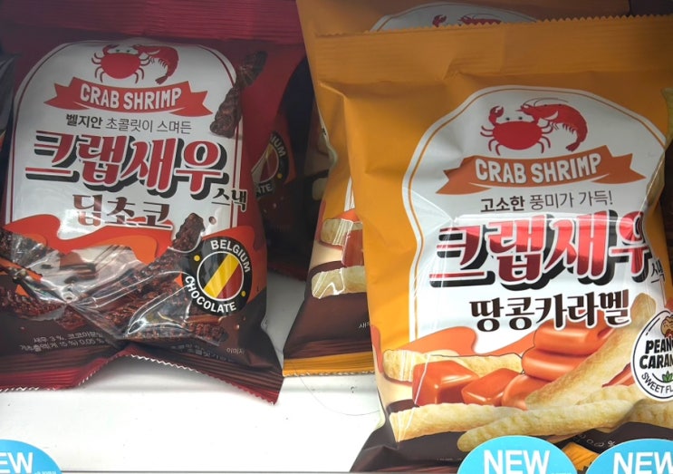 편의점 신상과자 초코새우깡 추천 크랩새우 스낵 딥초코와 땅콜카라멜 비교