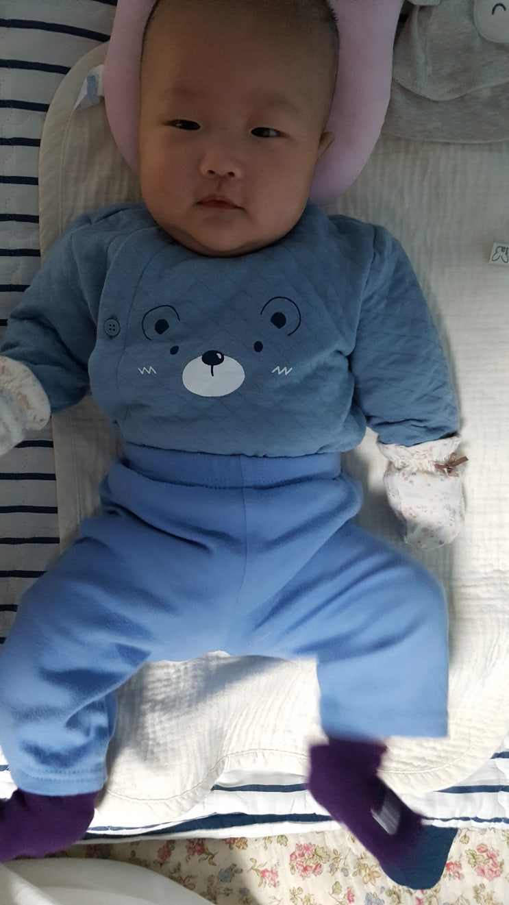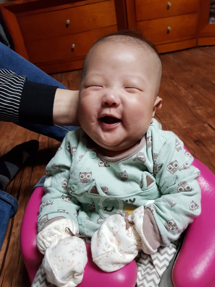 주니가 백일이 다가오는데도 머리를 가누지 못한다 머리가 유난히 크다. 완전 짱구머리~ 범보 의자에 앉혀 ...