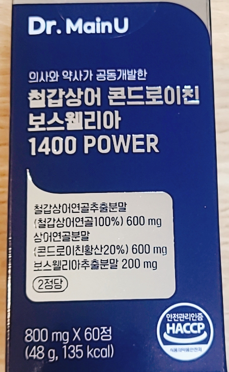 안녕하세요! 오늘은 제가 최근에 사용해본 건강기능식품, 닥터메인유 철갑상어콘드로이친 보스웰리아 1400...