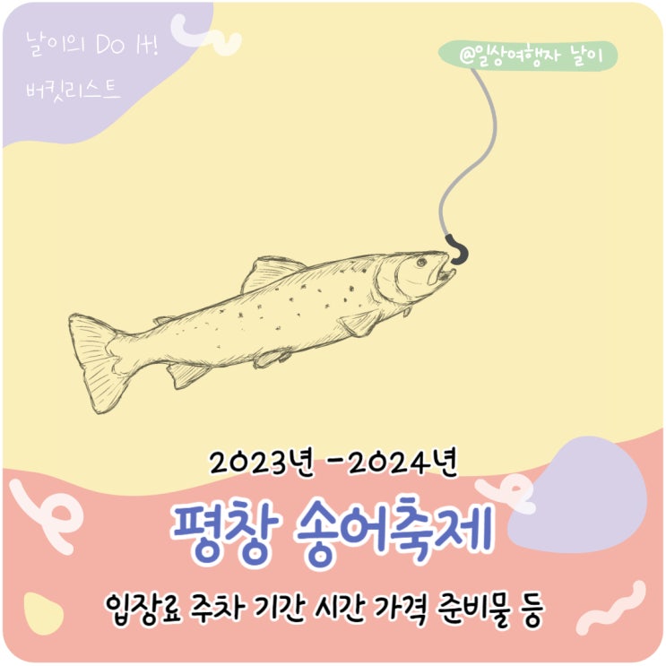평창 송어축제 글 /편집 일상여행자 날이 평창 송어축제는 2023~2024년 개최로 15회를 맞이하는 평창의 겨...