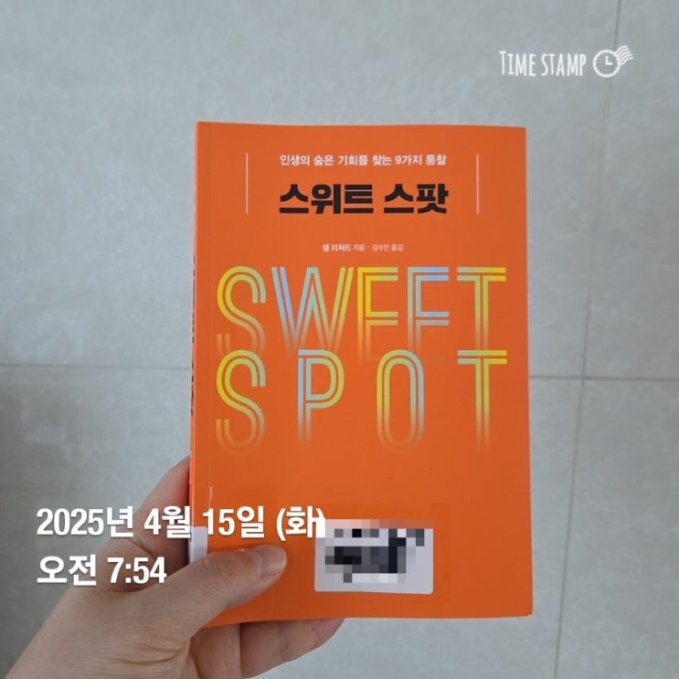 독서 후 남기고 싶은 부분만 발췌, 기록한 깡이 아빠의 일기 일자 : 1111일차(4/16) 책 : 스위트 스팟 저자...
