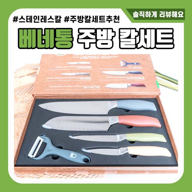 보기만 해도 요리 하고 싶어지는 너무 예쁜 베네통 주방 칼세트를 소개할게요 ! 베네통 올 스테인리스 칼 5...