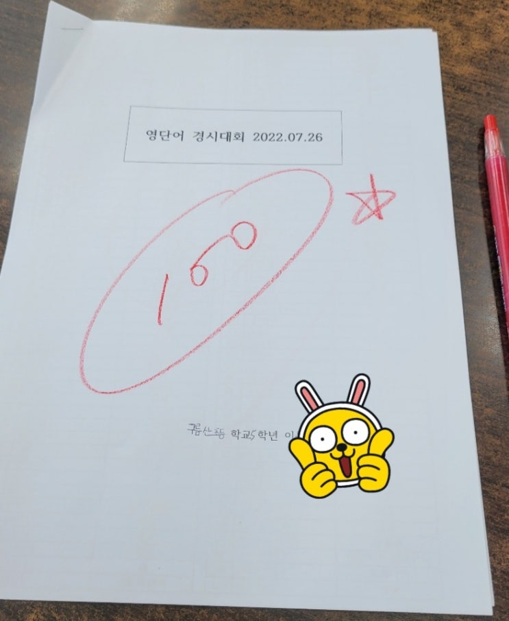 방학식날 영단어 경시대회를 치뤘다. 1단계 100단어 2단계 200단어 3단계 300단어 6학년 선배들을 제치고 5...