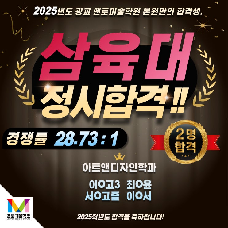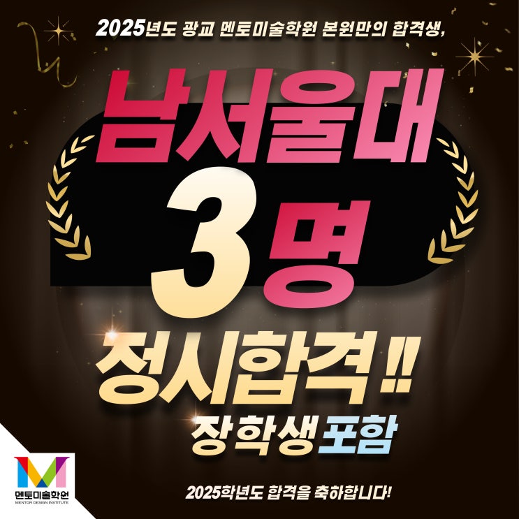 안녕하세요 여러분~!! 멘토미술학원입니다. 멘토 입시반 합격행진!! 2025 남서울대학교 정시 최초합격자가 ...