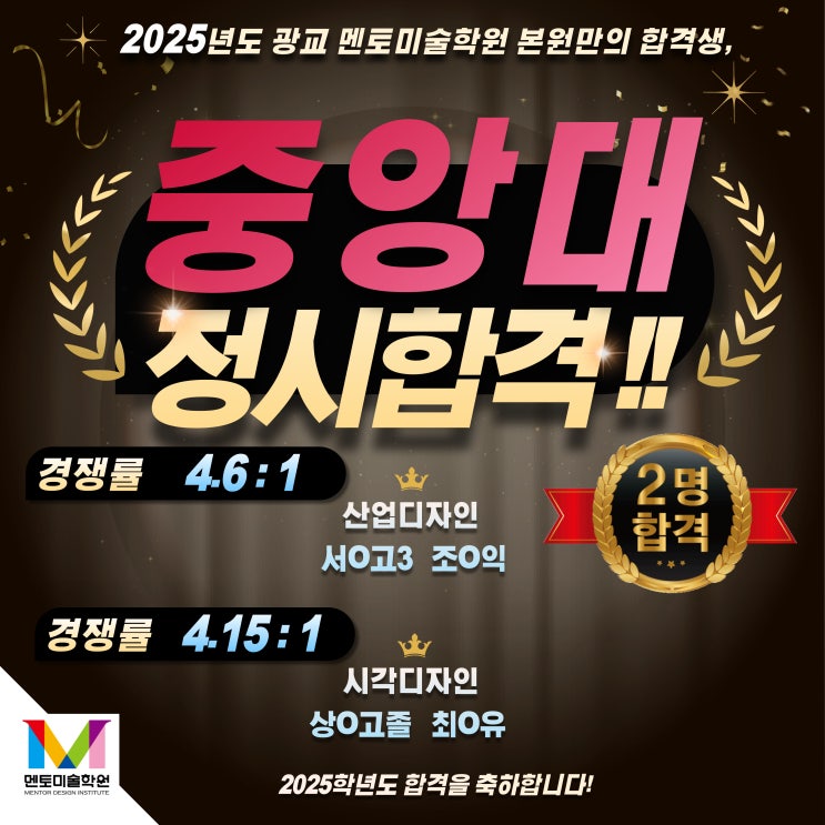 2025학년도 중앙대 시각디자인, 산업디자인 정시 2명 최초합격 !!