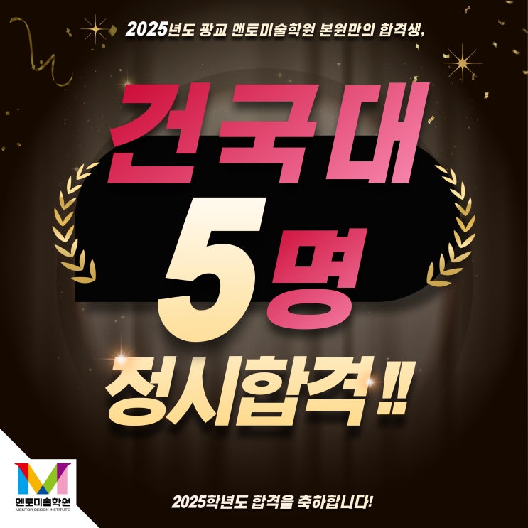 안녕하세요 여러분~!! 멘토미술학원입니다. 멘토 입시반 합격행진!! 2025 건국대학교 정시 최초합격자가 나...