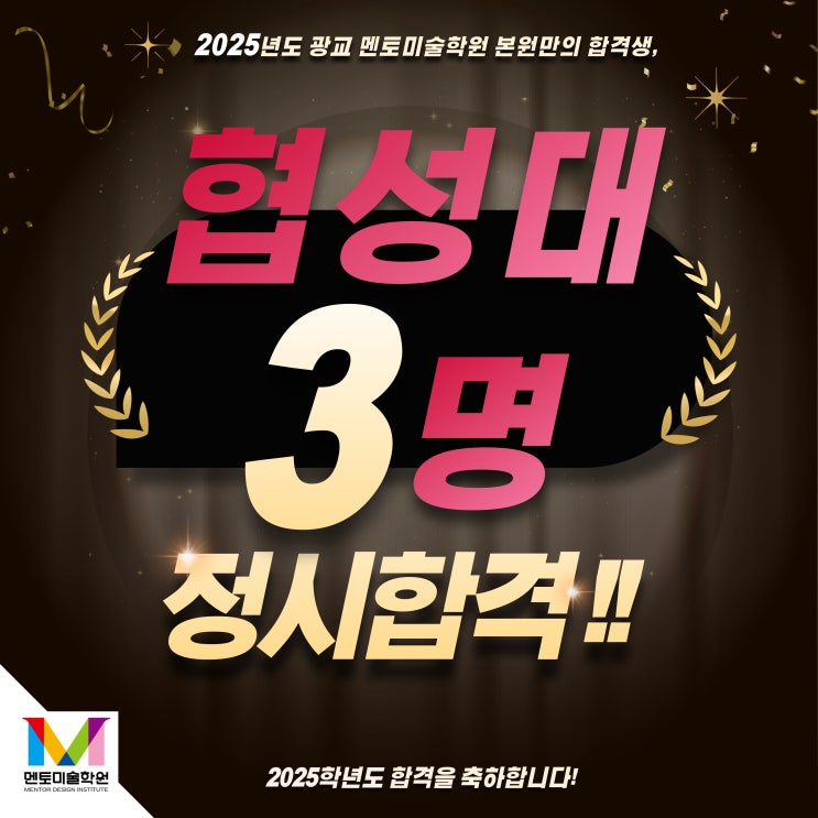 안녕하세요 여러분~!! 멘토미술학원입니다. 멘토 입시반 합격행진!! 2025 협성대학교 정시 최초합격자가 나...