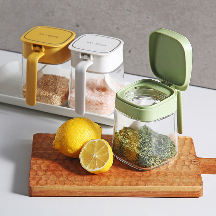 원터치 프레스 양념통 조미료 소금통 180ml 투명한 유리병에 감성적인 컬러가 더해져 양념들을 깔끔하고 모...
