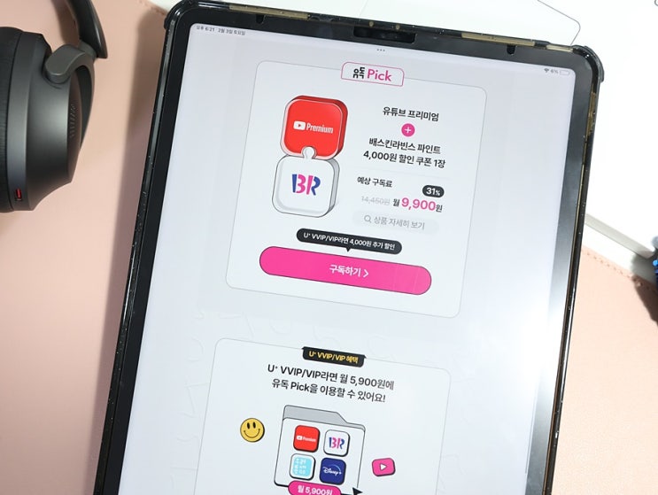 통신사 상관없는 유플러스 유독픽 서비스로 월 9,900원에 유튜브 프리미엄 + 배스킨라빈스 파인트 4,000원 ...