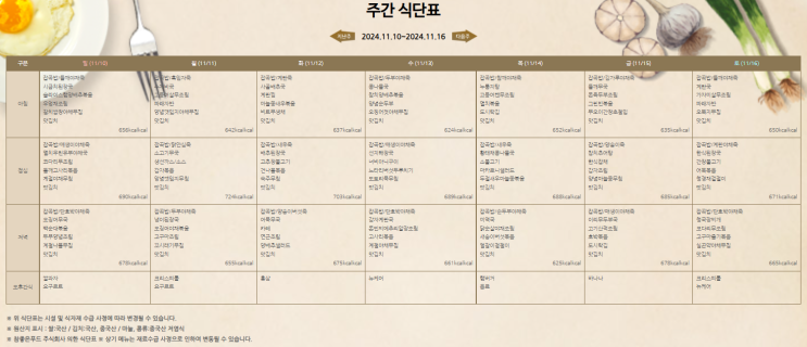 11월 2째주 식단표