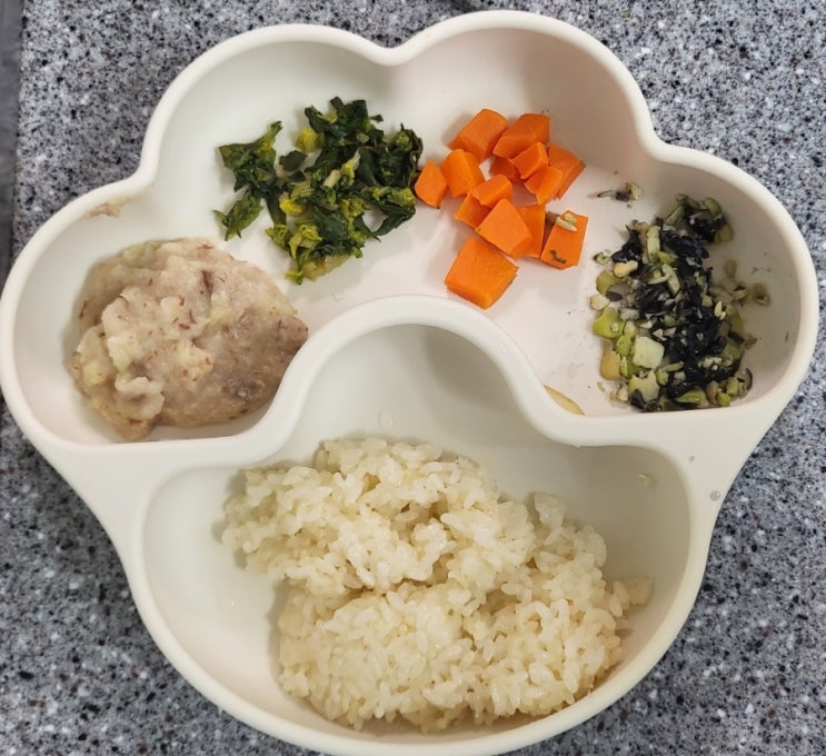 10개월 아기 자기주도이유식 / 소고기양배추마전 / 다진 시금치 / 당근 큐브 / 콩자반