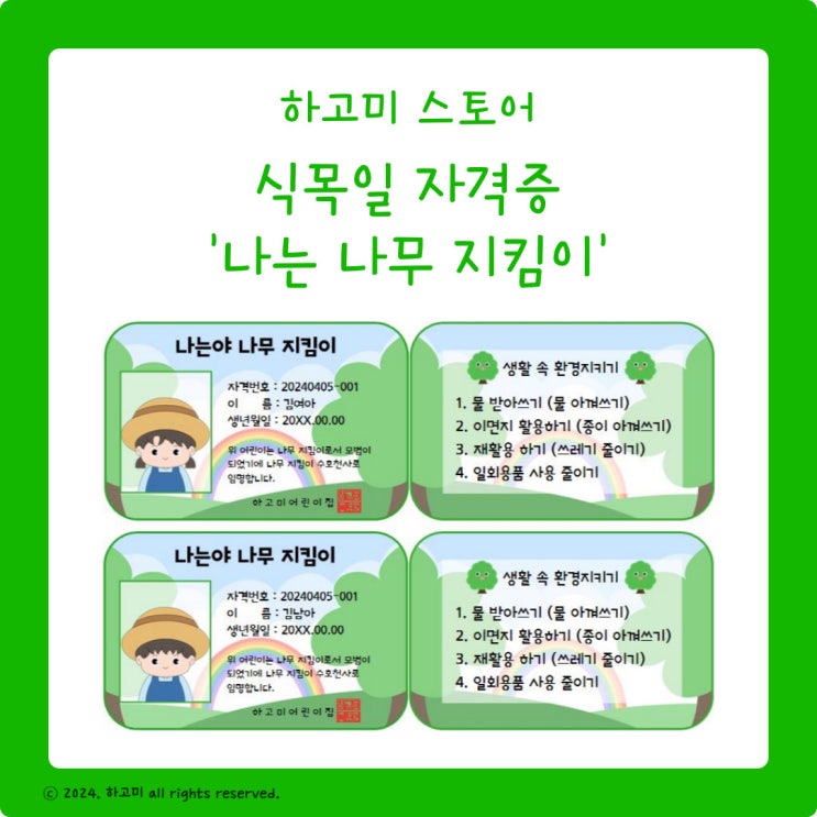 [공유마감/행사자료/식목일 활동 자료] 식목일 자격증 '나는 나무지킴이'