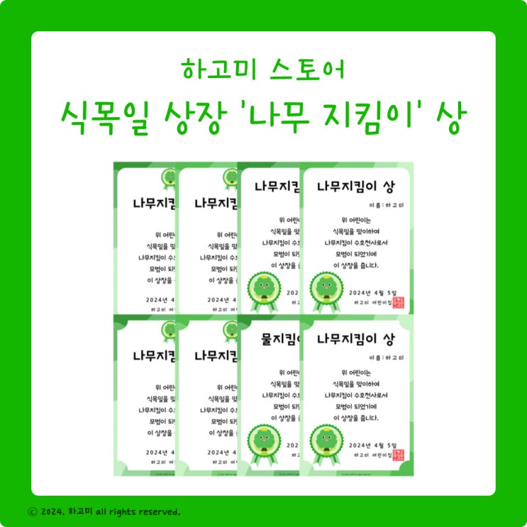[공유마감/행사자료/식목일 활동 자료] 식목일 상장 '나무 지킴이상'
