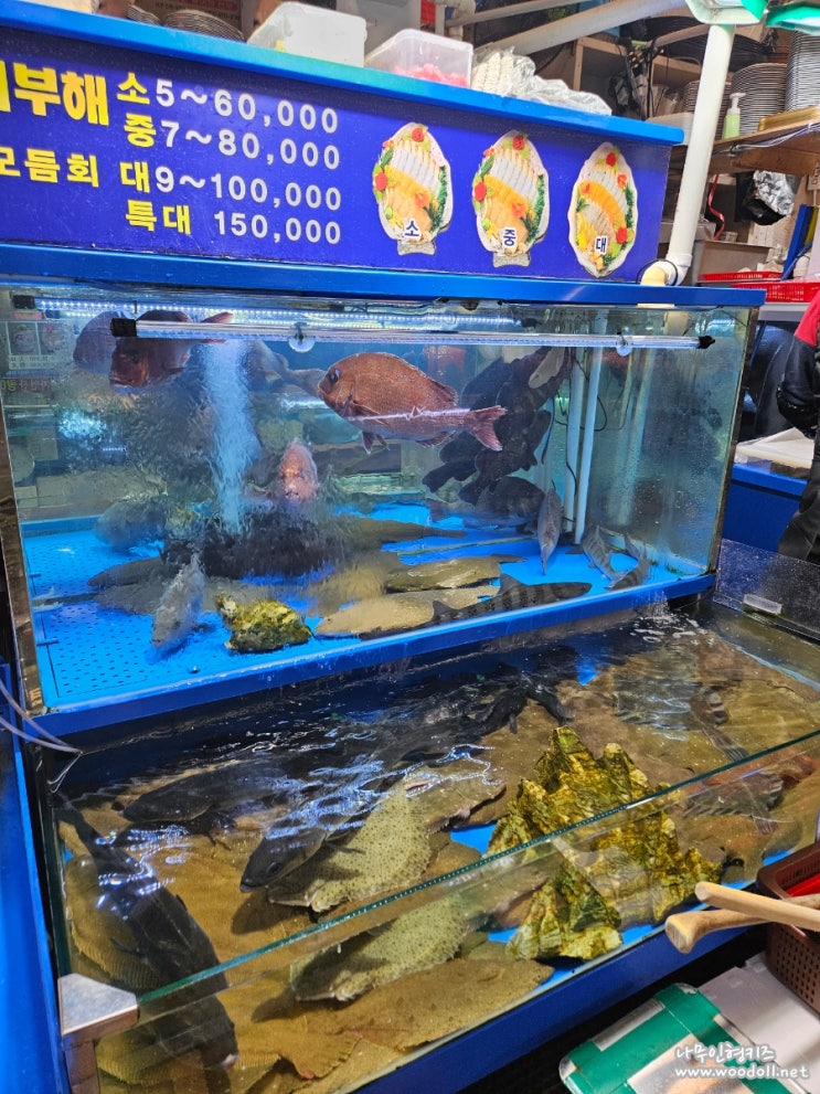#탄도항 에서 노을 못보고 갑자기 #노량진수산시장 에 회먹으러 고고 ~~~ 아아 물꼬기 많다 노량진수산시장...