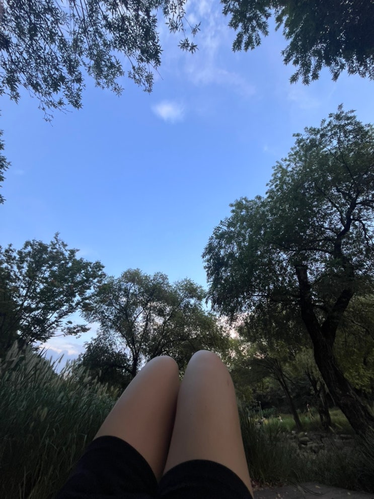 혼자서 땀 뻘뻘. 벤치에 벌렁 드러눕기.