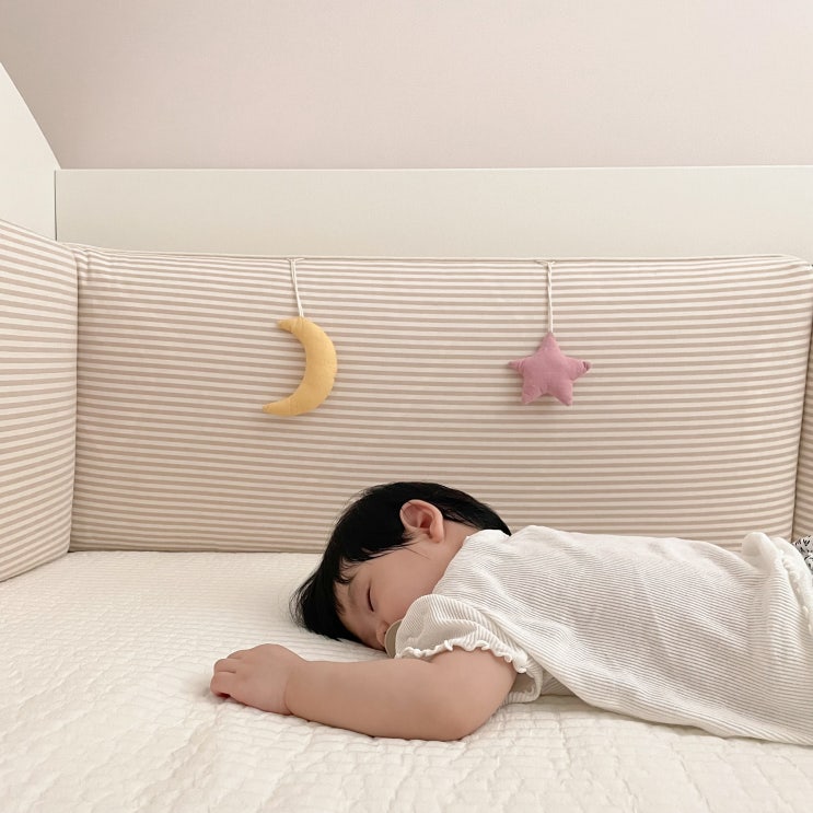 설이는 아직 뒤집기나 잡고 일어서기를 하기 전이지만, 좀 이르게 데이베드를 들이게 되었다. 범퍼침대, 높...