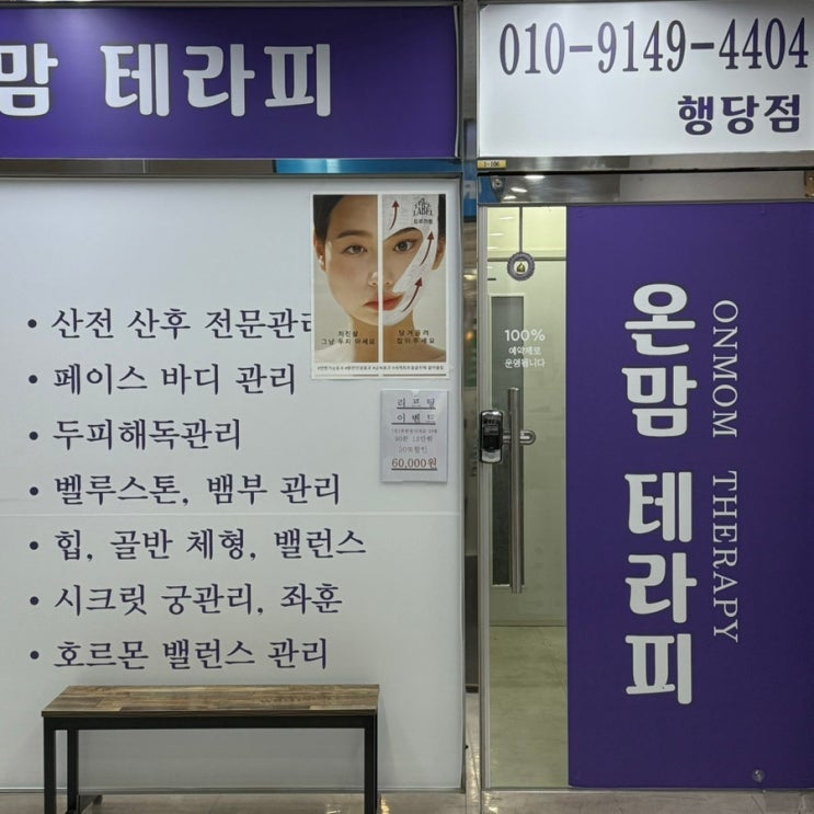 왕십리 마사지 온맘테라피 행당점 주차와 관리 후기 위치 서울 성동구 행당로 84 1층 106호 영업시간 월~금...