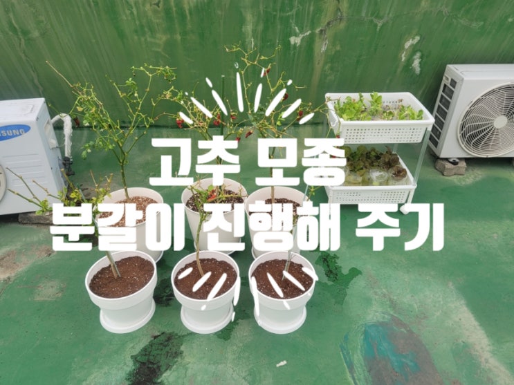 [옥상 텃밭] 작년 겨울을 버틴 고추 모종 2년생, 넓은 화분으로 분갈이 해주기