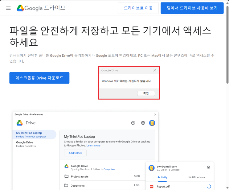 코파일럿+PC 및 ARM64 환경에서 구글 드라이브 사용방법