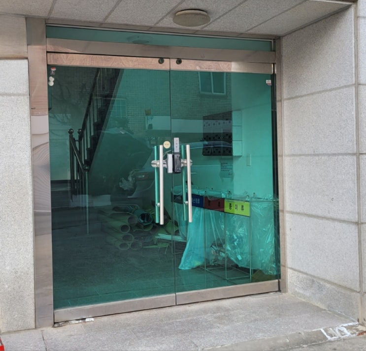 청주 유리문수리 개신동 원룸이 많은 골목가에 출입하는 양개 강화유리문 많은 입주자분들이 매일 사용을 ...