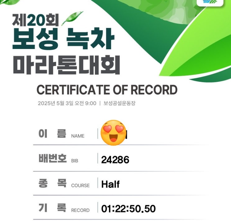 달리기는 건강, 마라톤은 도전, 트레일은 낭만 2025 보성녹차마라톤 대회는 도전정신으로 열심히 달렸다. ...