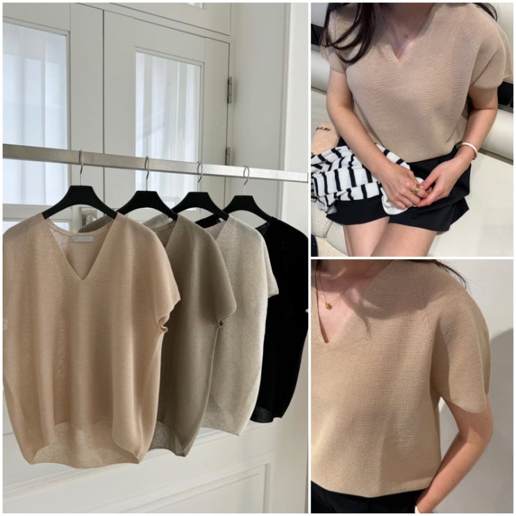 여름 데일리룩 완성 린넨 브이넥 반팔니트 / 77사이즈까지 가능,출근룩, 하객룩추천