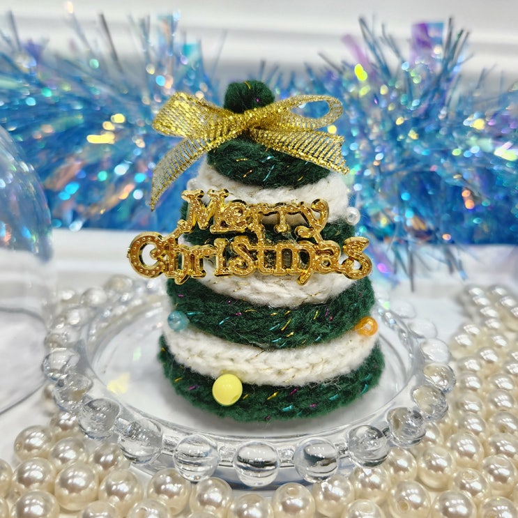 크리스마스 선물 눈쌓인 뜨개 미니트리 유리돔 데스크테리어 장식 소품