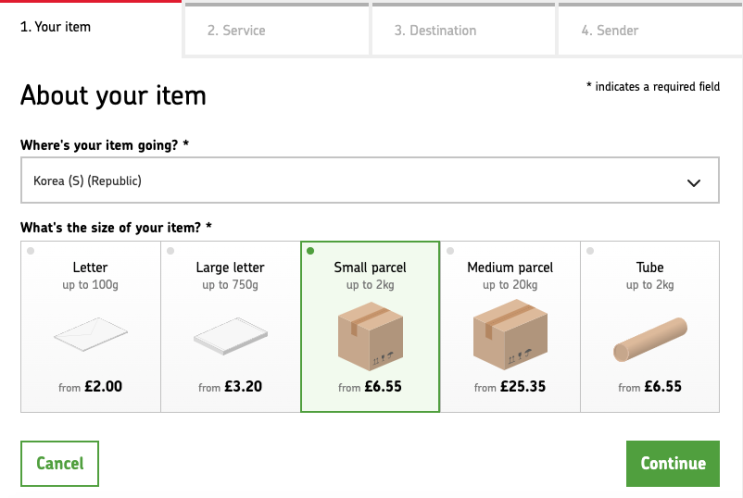 영국에서 한국으로 소포 보내기