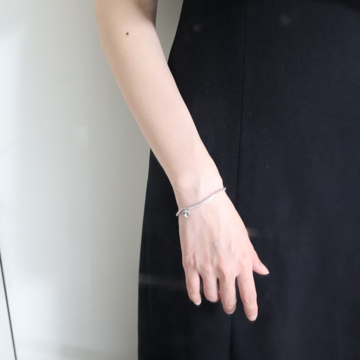행운팔찌 실버주얼리 추천, 레뉴쥬얼리 행운의 조약돌 큐빅 바 실버 팔찌