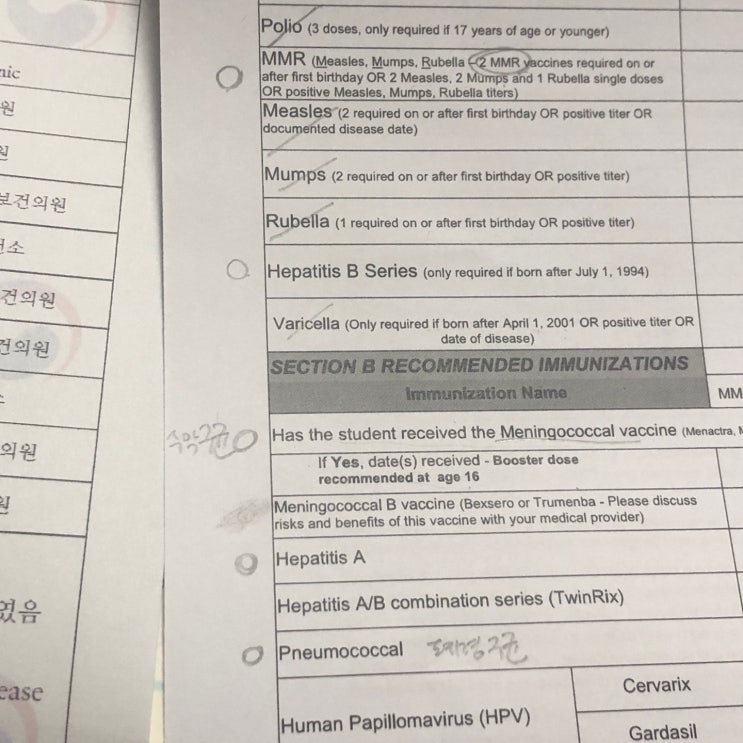 [미국 박사유학 준비] immunization record 제출, 예방접종 증명서 준비하기