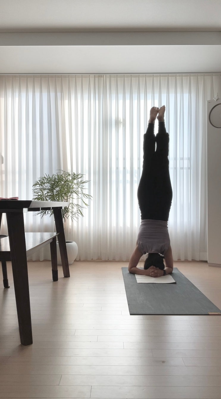 혼자 요가를 할 때, 꼭 머리서기를 한다. 내가 그나마 할 수 있는 고난도(처럼 보이는) 아사나이다. 다리를...