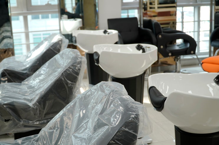 감각적인 인테리어의 부산 전포동 미용실 미용의자 샴푸대 미용기기 설치 :)