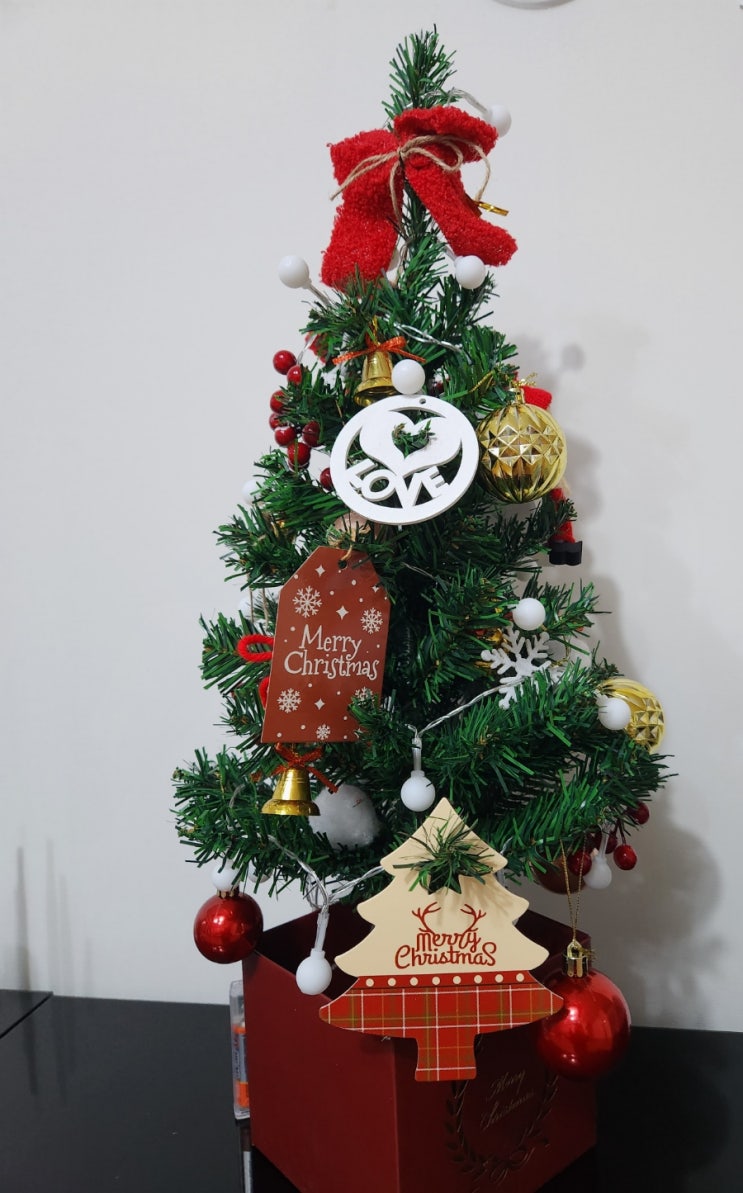 다 큰 성인 딸이 분위기 내려고 크리스마스 트리를 놓았다. 조그마한 것이 이쁘기도 하네. 알바하면서 번 ...