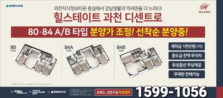 과천 힐스테이트 디센트로 80.84타입 할인분양 파격가 선착순입금! (과천지식정보타운역 힐스테이트)