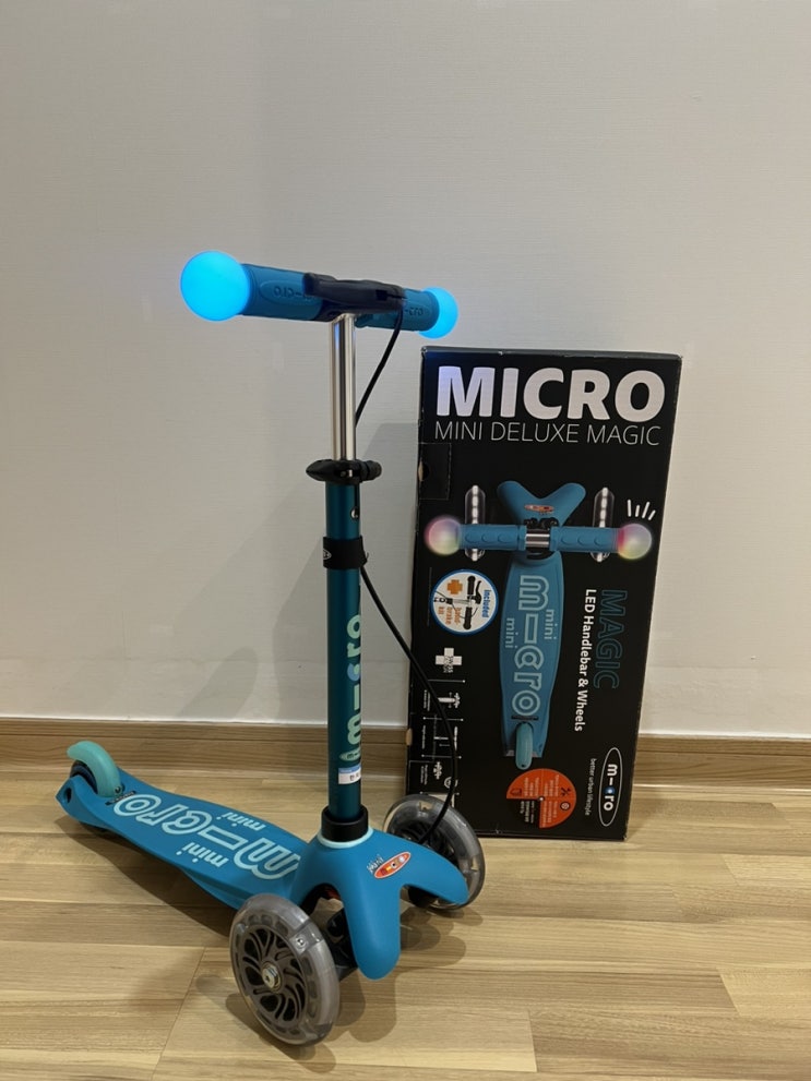 유아킥보드 추천 /마이크로 킥보드/ 미니 핸드 디럭스 LED매직 아쿠아 /27개월아기 킥보드
