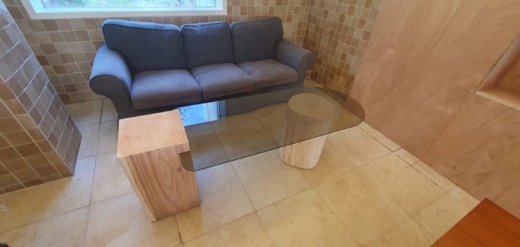 통나무와 강화유리의 콜라보, 미니 협탁, 소파테이블