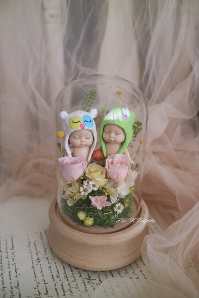 쌍둥이 임신축하선물 로 시들지 않는 생화 아기인형장식 오르골 은 더꽃피다의 임신축하 시그니쳐꽃이랍니...