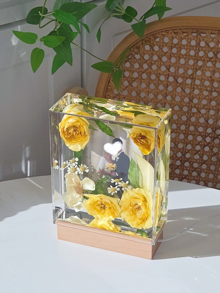 안녕하세요. 부케말리기공방 유어스푼입니다. 사진교체가 가능한 포토액자로도 사용이 가능하고, 무드등으...