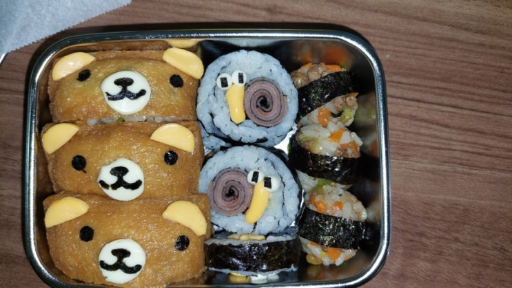 초등학교 소풍도시락 햄버거김밥 다람쥐 유부초밥