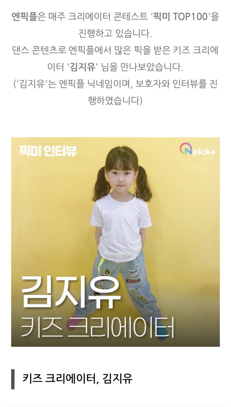 키즈모델김지유 엔픽플 인터뷰