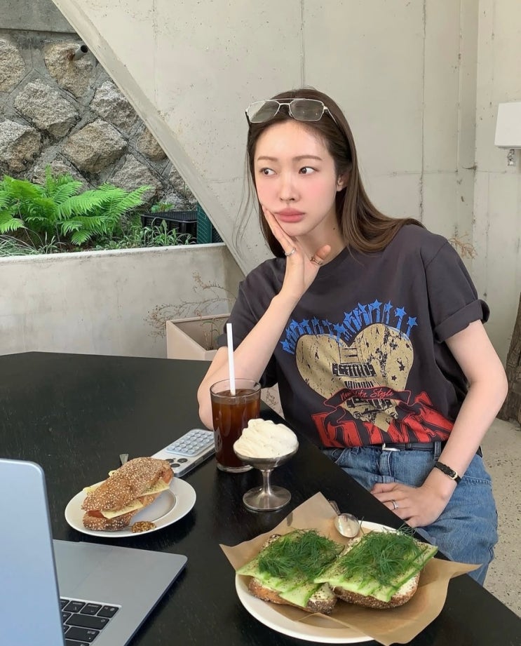 250506 차정원 인스타그램 패션 옷 정보/ 로고 그래픽 반팔 티셔츠 코디/ @레이브