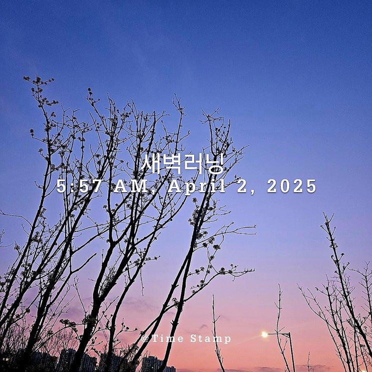 새벽 러닝 4일 차 기온 3° 습도 96% 바람 ↗0㎧ 기압 1021hPa 오늘도 새벽에 일어나서 달리기를 하고 왔어...