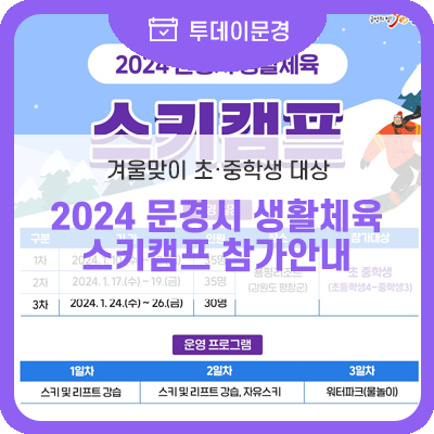 2024 문경시 생활체육 스키캠프 참가안내 안녕하세요, 문경시청 블로그 독자 여러분! 점점 추워지는 날씨에...