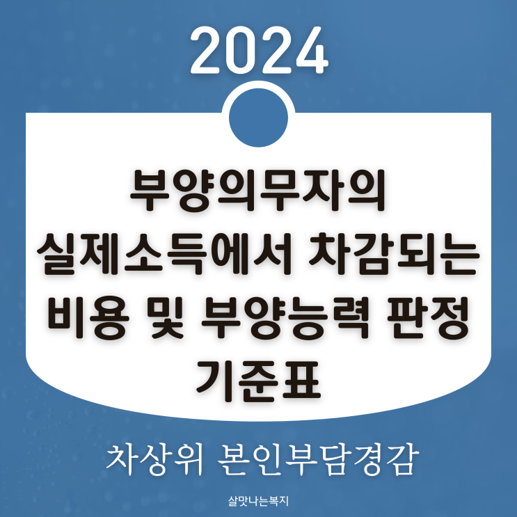 2024년 차상위본인부담경감 부양의무자의 실제소득에서 차감되는 내용 및 부양능력 판정기준표 안녕하세요....
