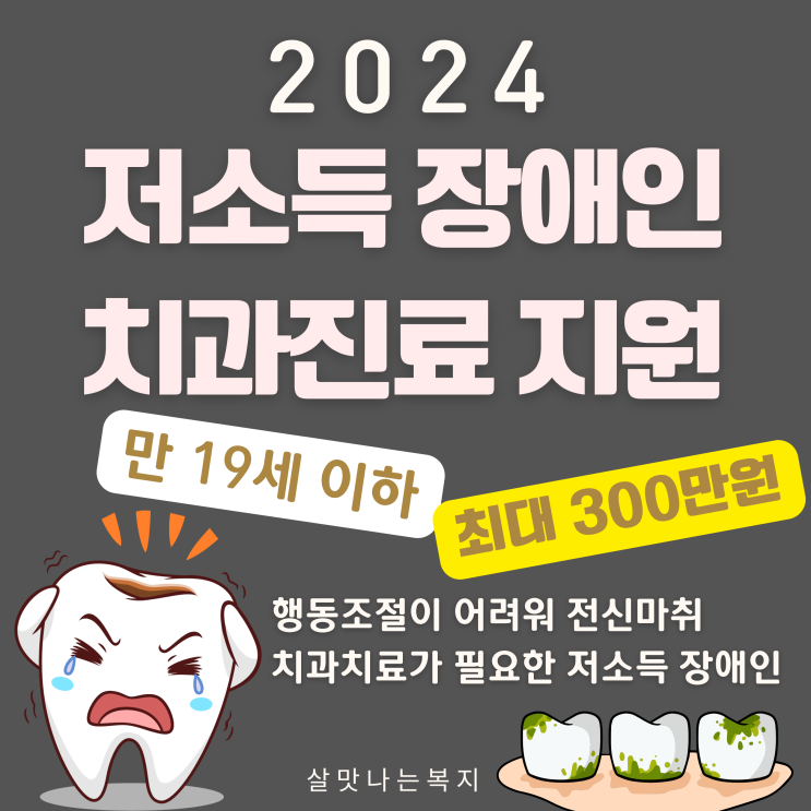 2024년 저소득 장애인 치과진료 지원사업 신청자 모집 안녕하세요. 살맛나는복지입니다. 1. 지원대상 ● 행...